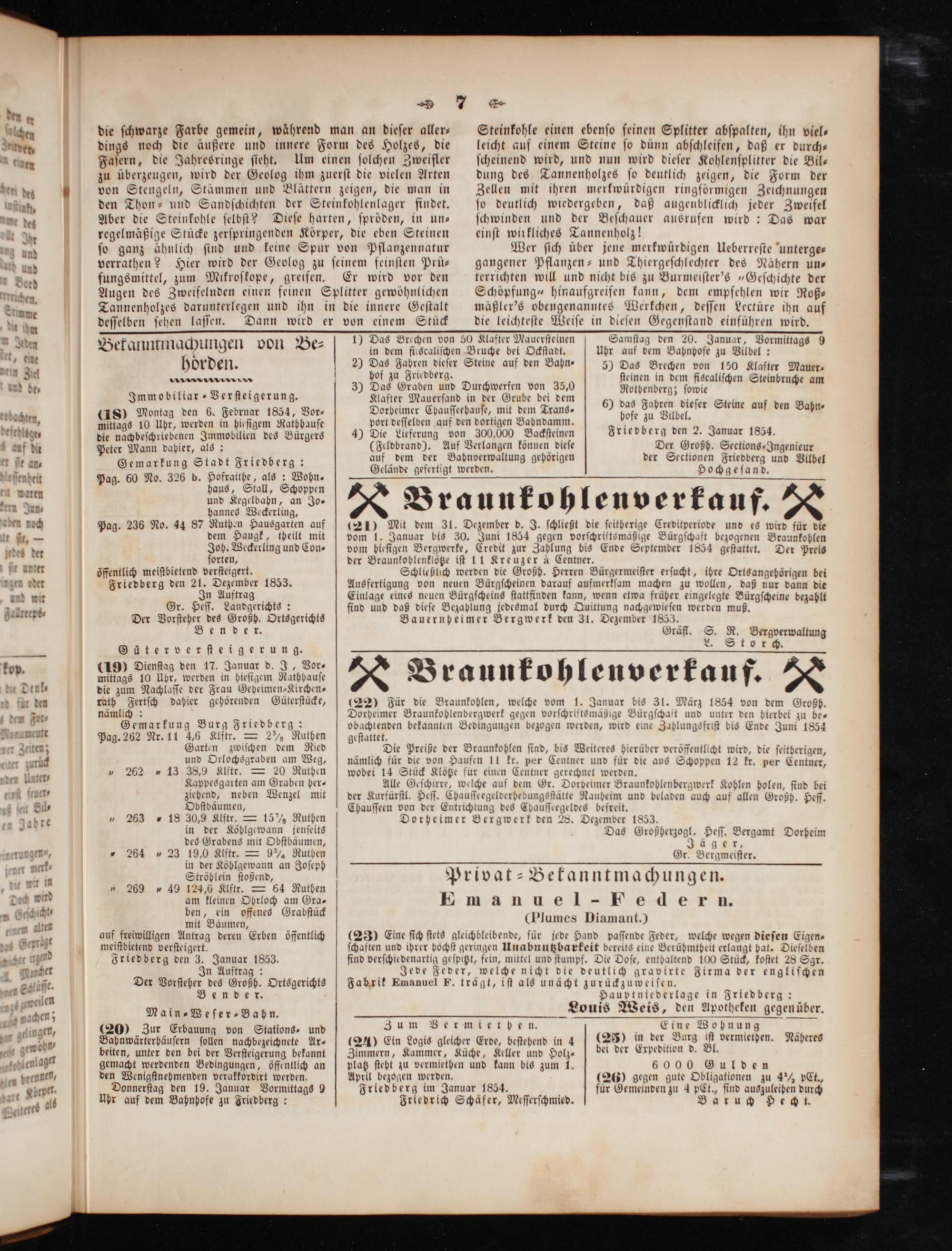 Friedberg den 2. Januar 1854.