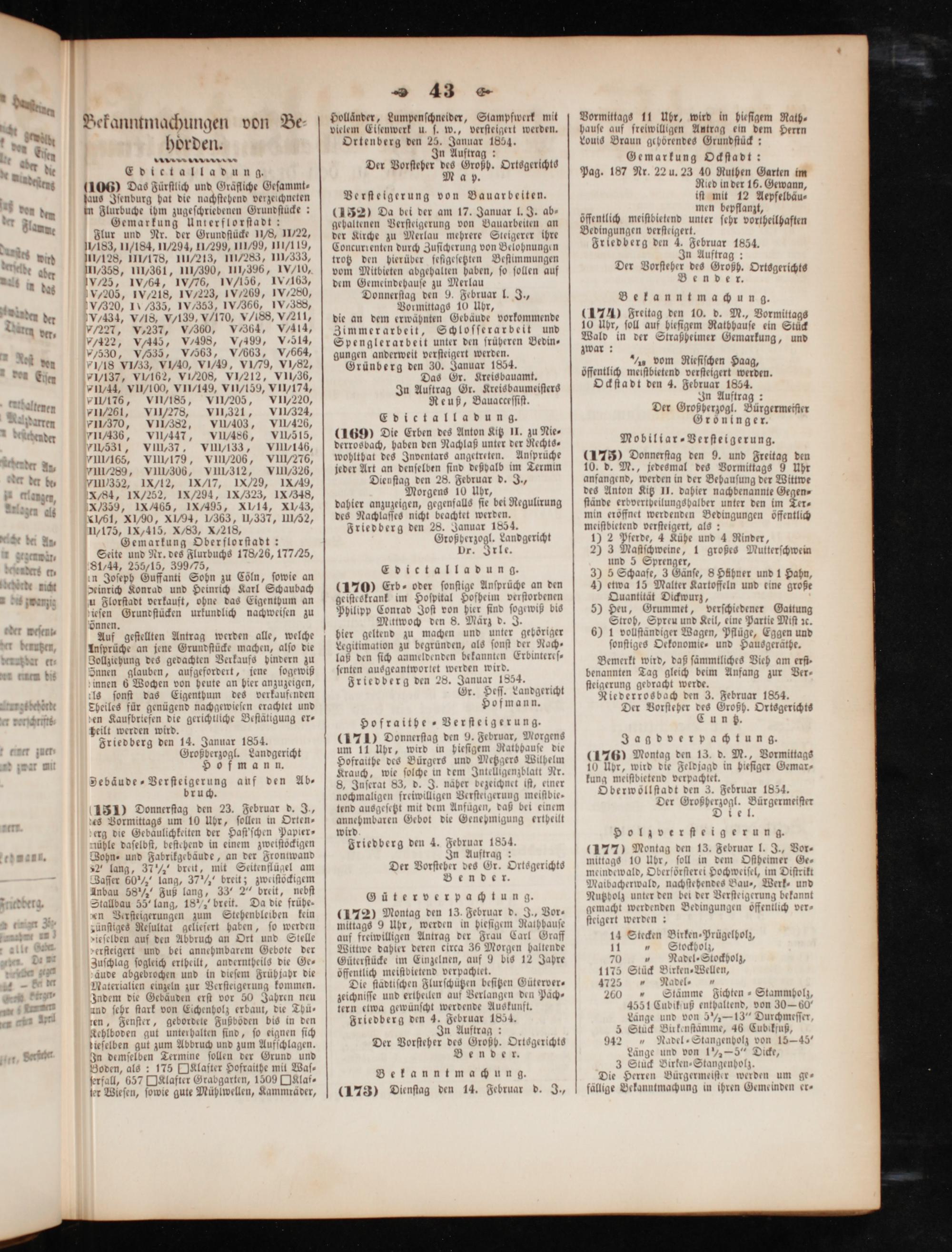 Friedberg den 4. Jebruar 1854. In Auftrag: D No O Der Vorſteher des Großh. Ortsgerichts Bender.