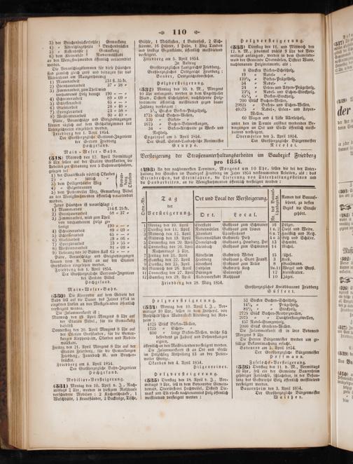 Verſteigerung der Straßenunterhaltungsarbeiten im Baubezirk Friedberg pro 1834.