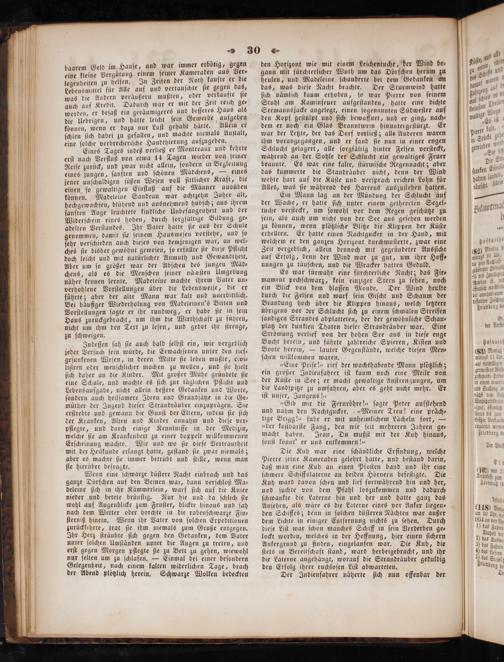 baarem Geld im Hauſe, und war immer erbötig, gegen eine kleine Vergütung einem ſeiner Kameraden aus Ver⸗ legenheiten zu helfen. In Zeiten der Noth kaufte er die Lebensmittel für Alle auf und vertauſchte ſie gegen das, was die Andern veräußern mußten, oder verkaufte ſie auch auf Kredit. Dadurch war er mit der Zeit reich ge— worden, er beſaß ein geräͤumigeres und beſſeres Haus als die Uebrigen, und hätte leicht ſein Gewerbe aufgeben konnen, wenn er dazu nur Luſt gehabt hatte. Allein er ſchien ſich dabei zu gefallen, und machte niemals Anſtalt, eine ſolche verbrecheriſche Handthierung aufzugeben.