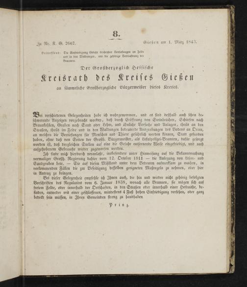 Zu Nr. K. G. 2667. Gießen am 1. März 1843.