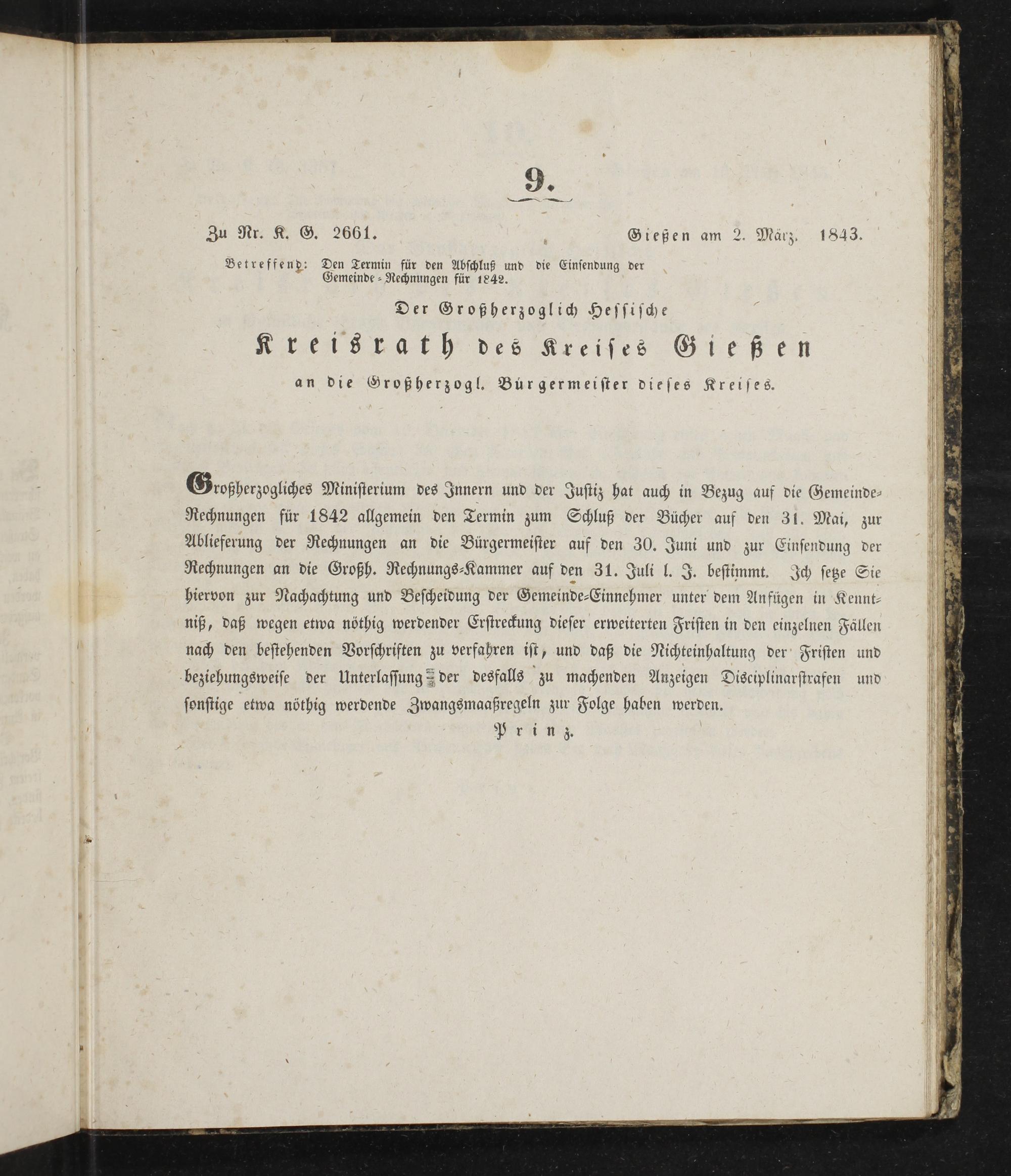 Zu Nr. K. G. 2661. N Gießen am 2. März. 1843.