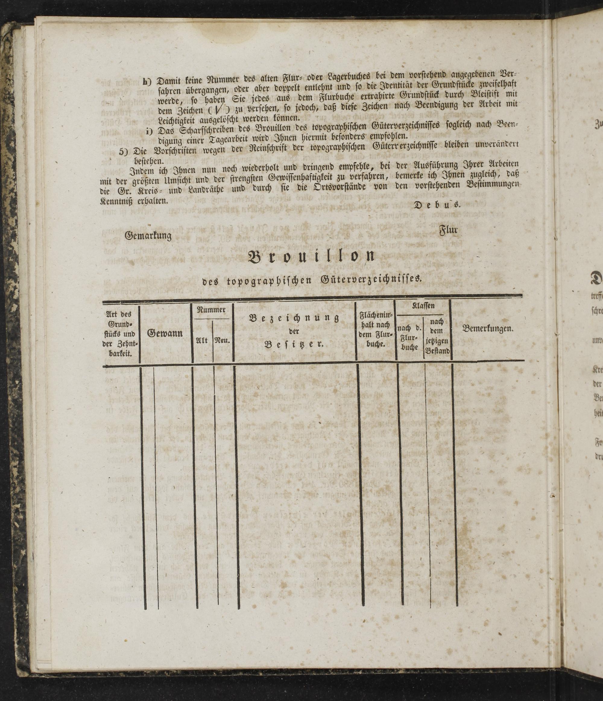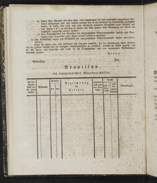 1) Das Scharsschreiben des Brouillon des topographischen Güterverzeichnisses sogleich nach Been⸗ digung einer Tagearbeit wird Ihnen hiermit besonders empfohlen.