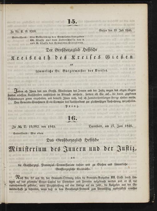Zu Nr. K. G. 8398. Gießen den 10. Juli 1846.