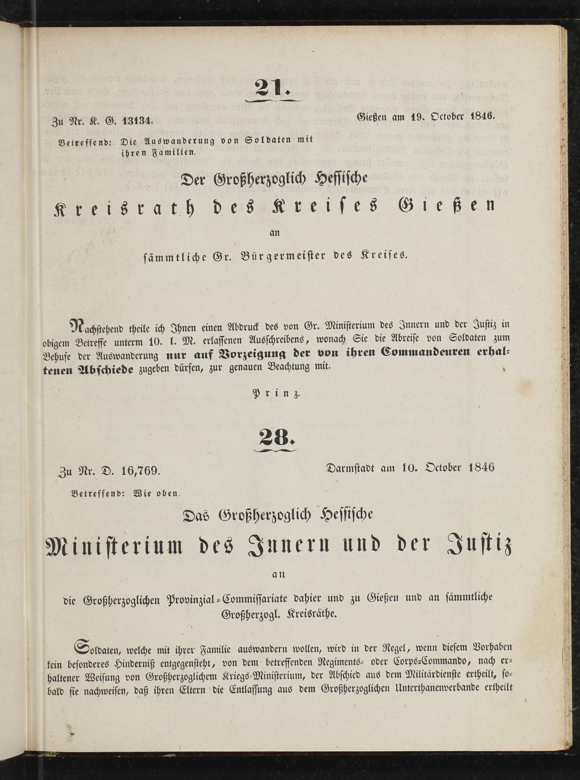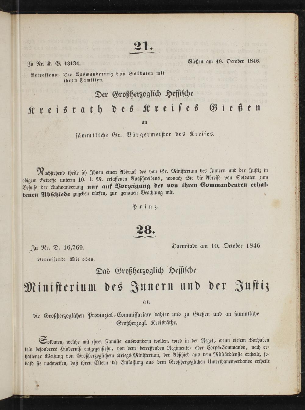 Zu Nr. K. G. 13134. Gießen am 19. October 1846.