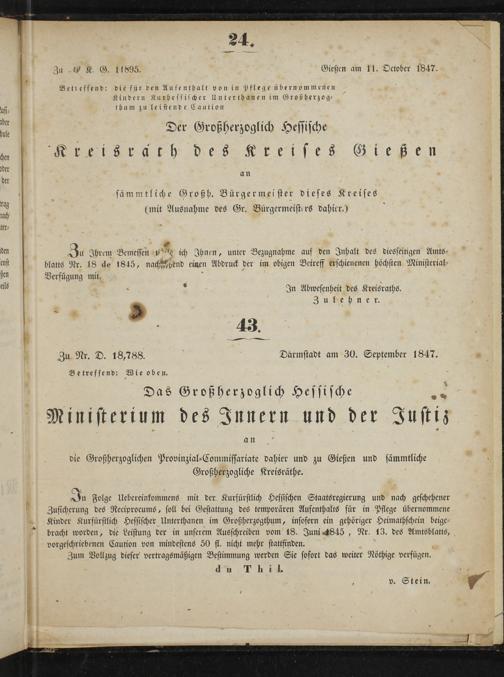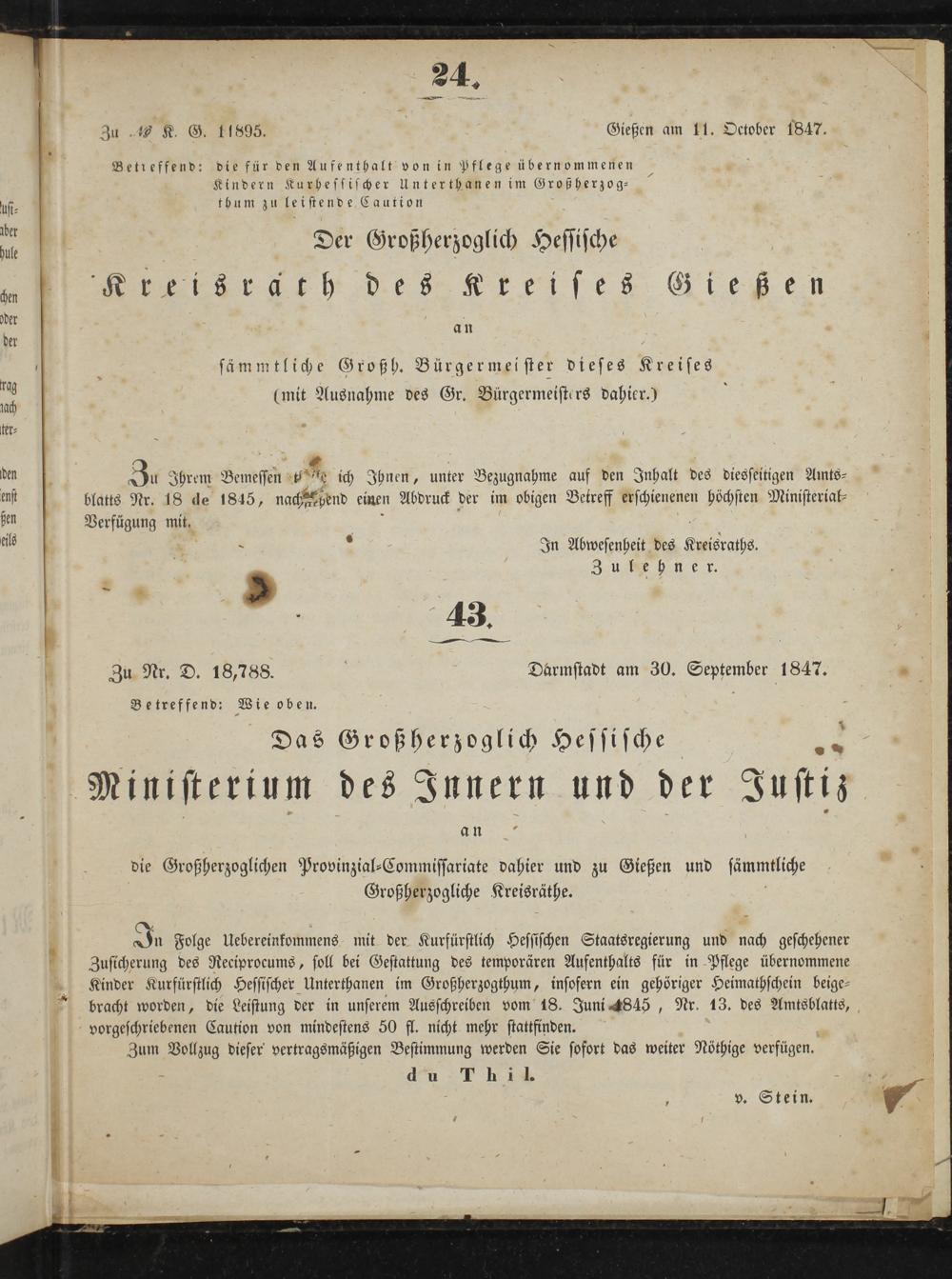 Zu, K. G. 11895. Gießen am 11. October 1847.