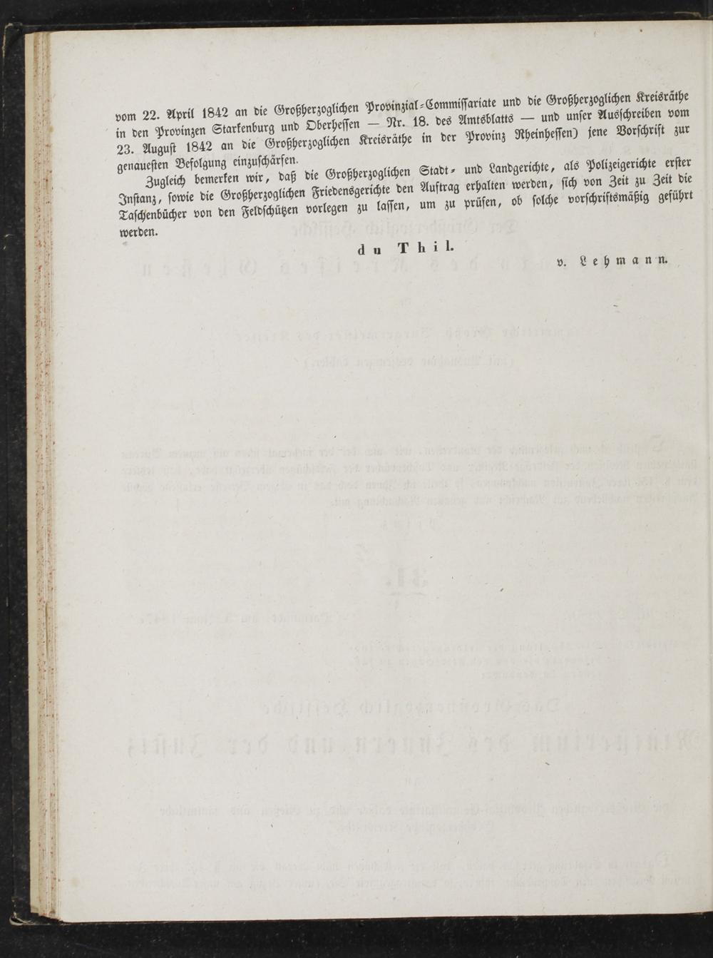 vom 22. April 1842 an die Großherzoglichen Provinzial⸗Commissariate und die Großherzoglichen Kreisräthe in den Provinzen Starkenburg und Oberhessen— Nr. 18. des Amtsblatts— und unser Ausschreiben vom 23. August 1842 an die Großherzoglichen Kreisräthe in der Provinz Rheinhessen) jene Vorschrift zur genauesten Befolgung einzuschärfen.