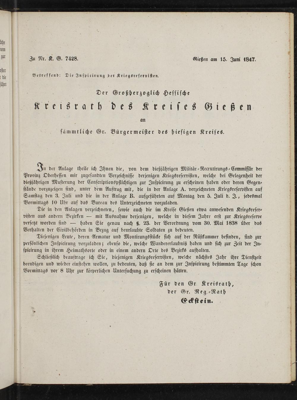 Zu Nr. K. G. 7428. Gießen am 15. Juni 1847.
