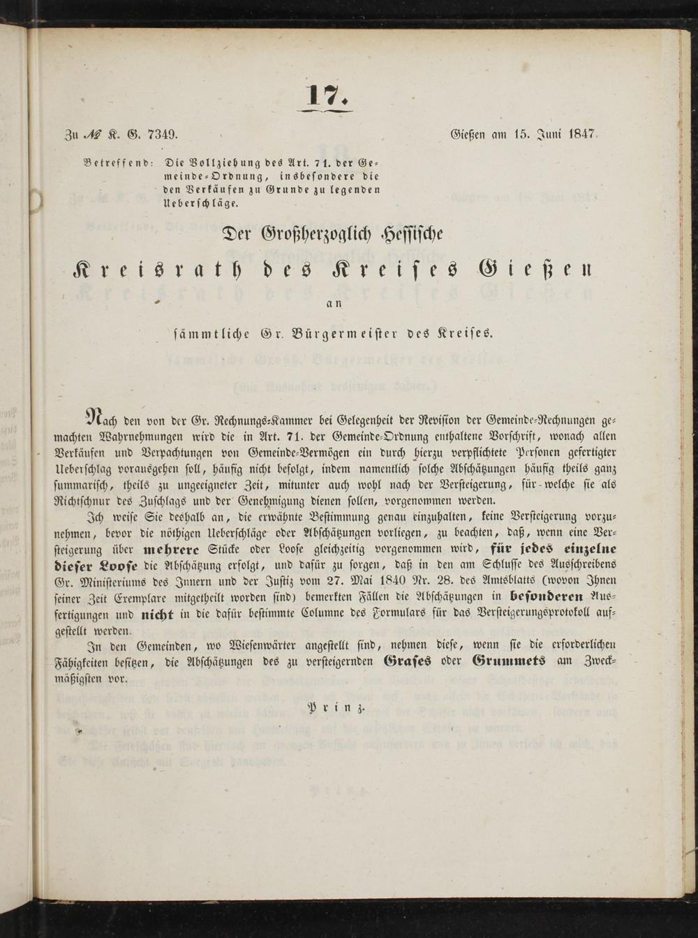 Zu, K. G. 7349. Gießen am 15. Juni 1847