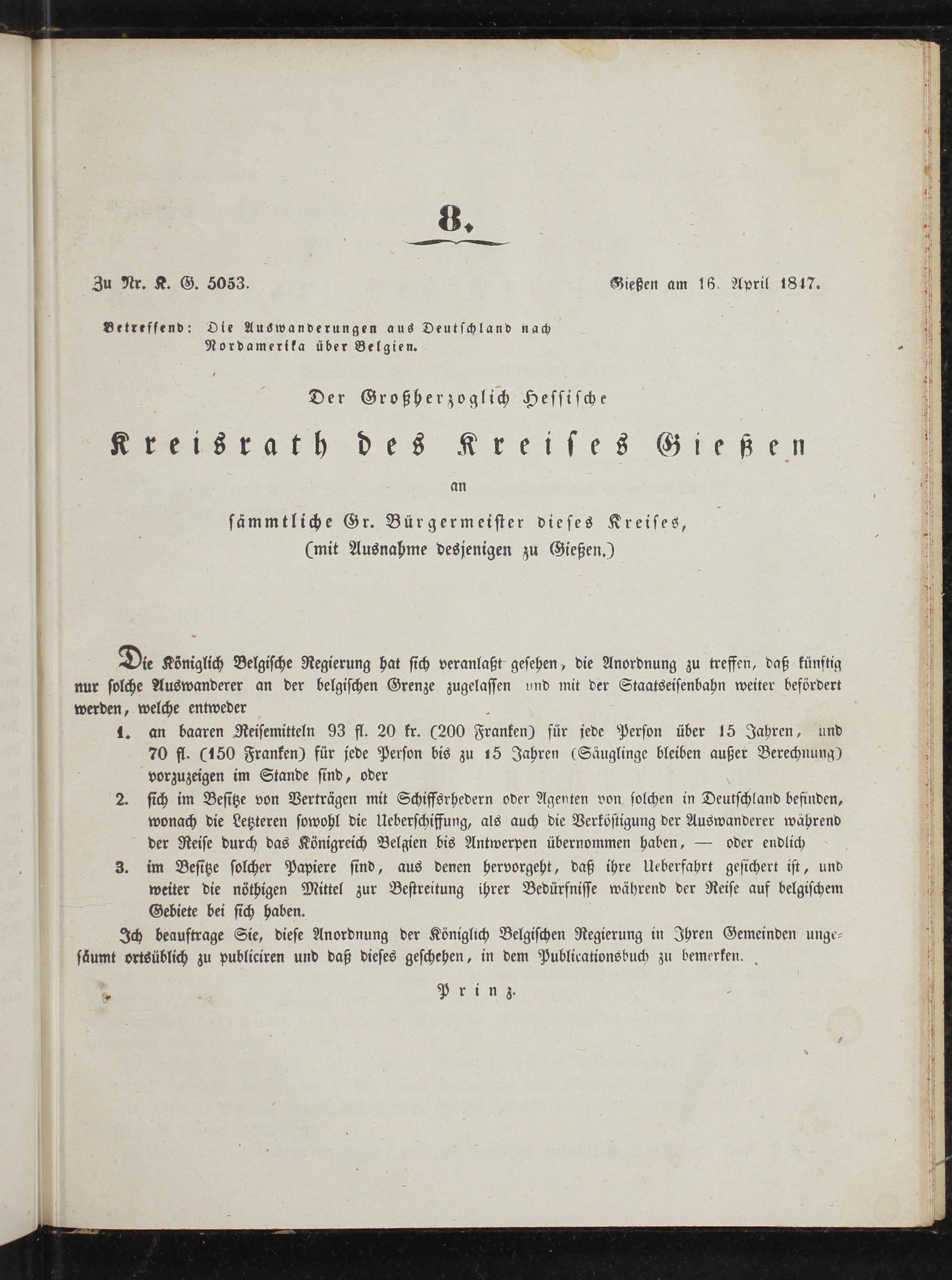 Zu Nr. K. G. 5053. Gießen am 16. April 1847.