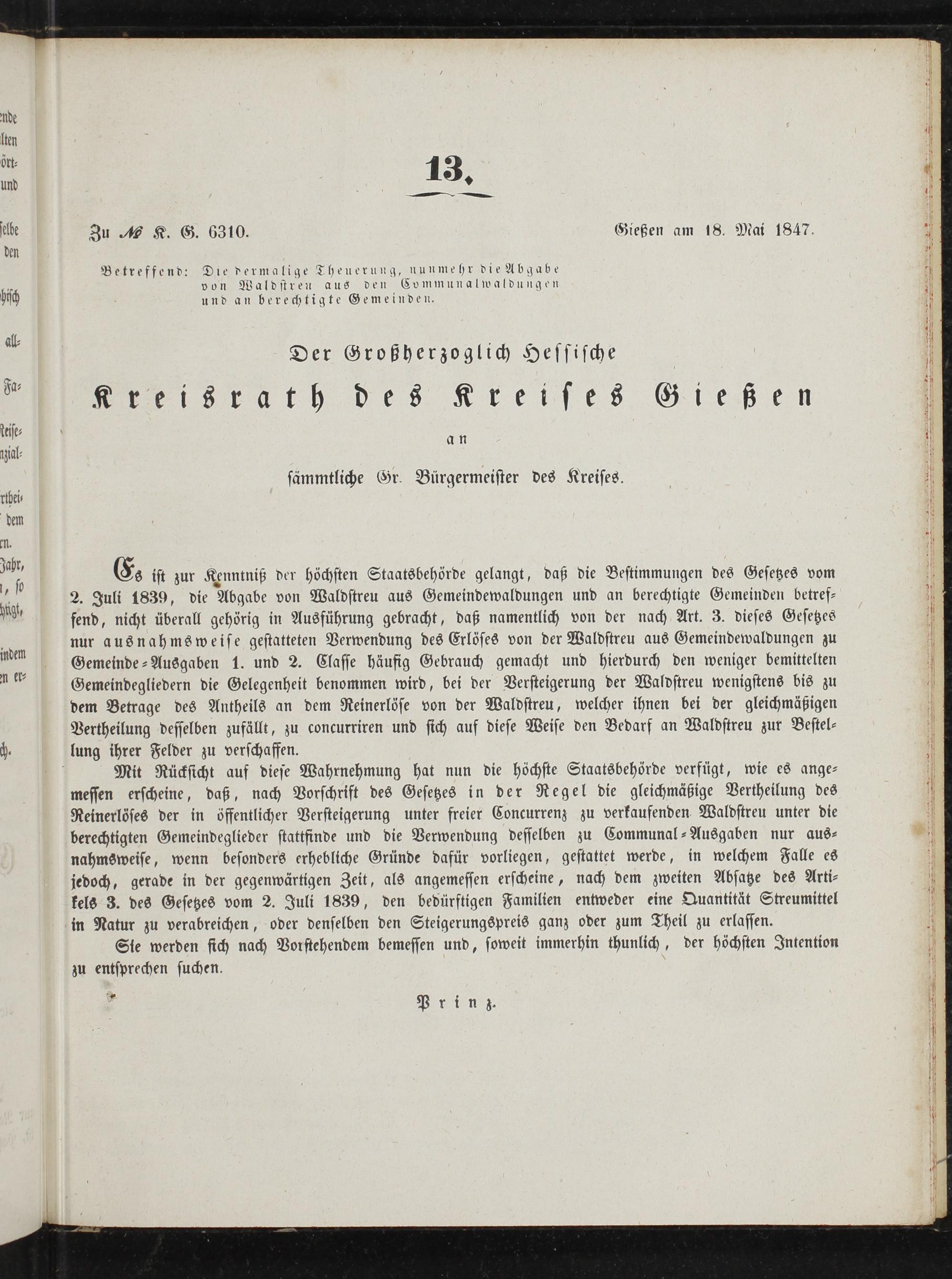 Zu u K. G. 6310. Gießen am 18. Mai 1847.