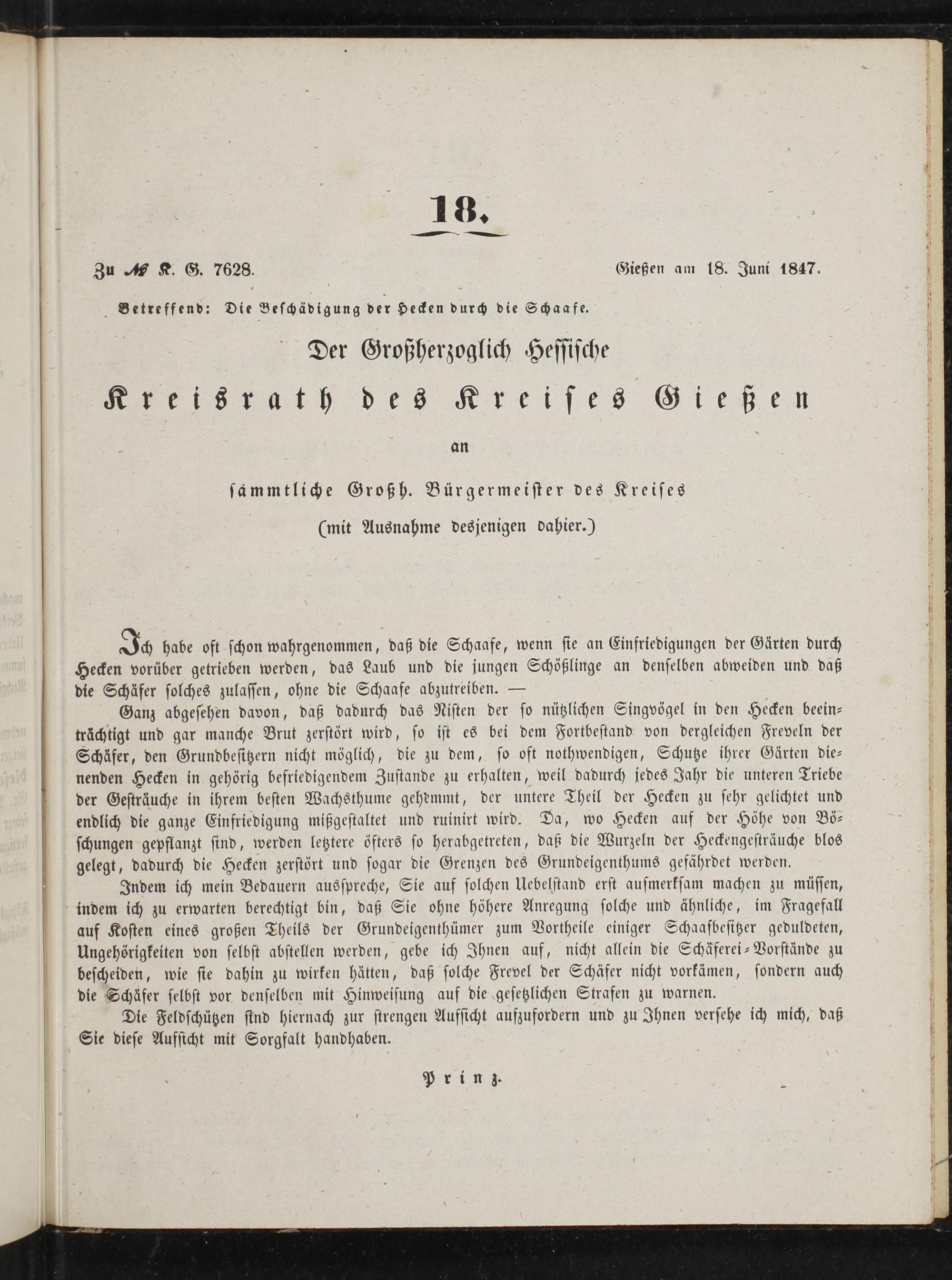 18. Zu, K. G. 7628. Gießen am 18. Juni 1847.