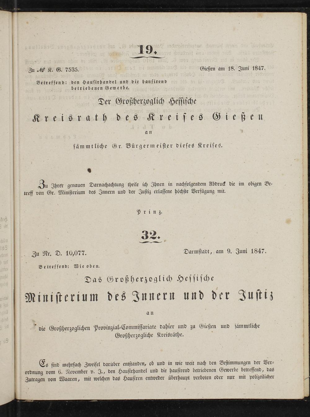 6 4 32 Zu Nr. D. 10,077. Darmstadt, am 9. Juni 1847. Betreffend: Wie oben.