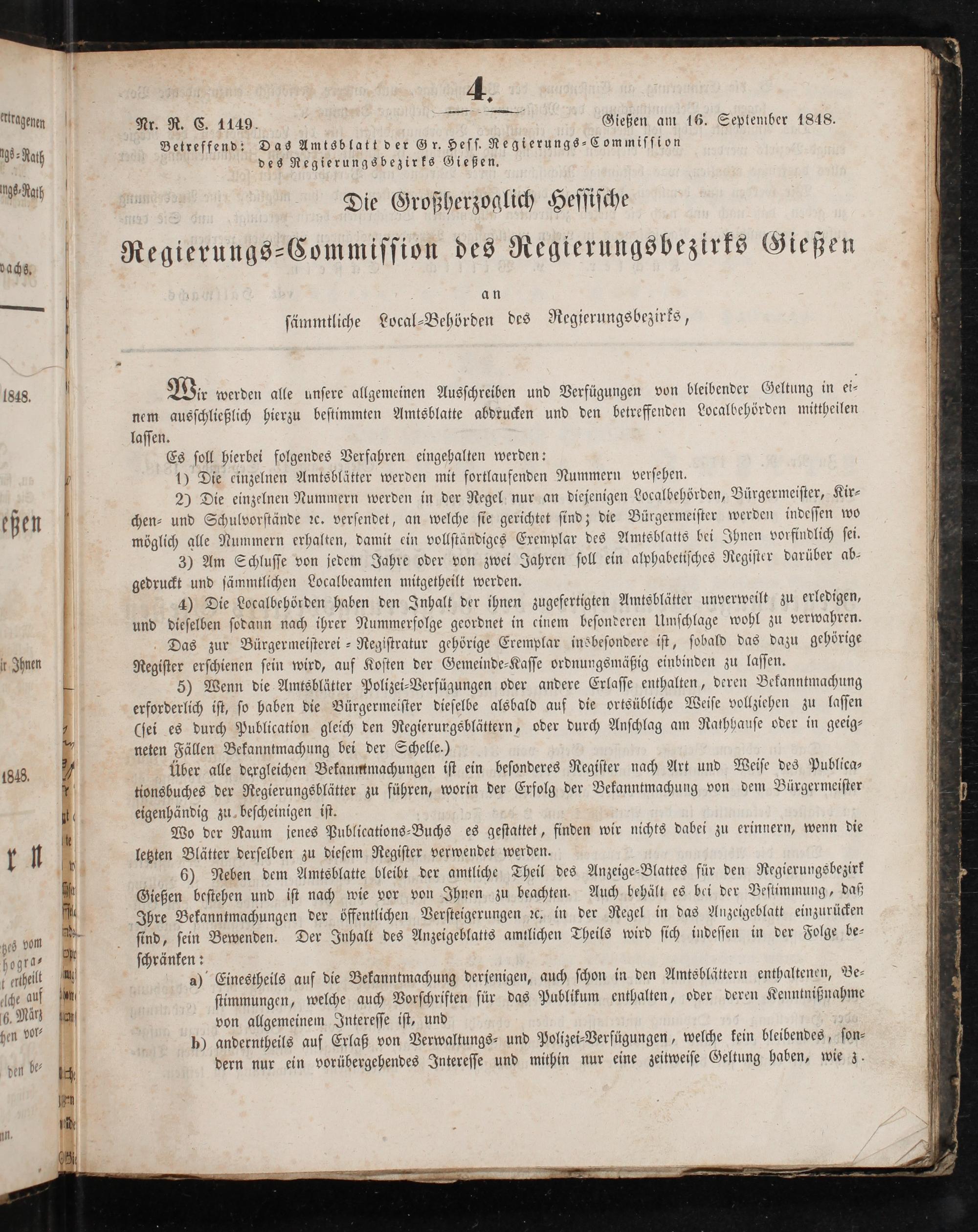 Nr. R. C. 1149. f a 5 Gießen am 16. September 1848.