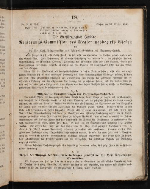 Nr. R. C. 2830(Aessen am 30, Oetober kickt Betreffend: Has Verfahren der Gr, N Angerm elften bel Polsgetübertretungen, Veyb rechen und tragltschen Fällen Die Großherzoglich Hessische N * 1„ N 18 1„ien NNeeeirrneen 148 Regierungs-Commission des Reglerungsbezirks Gießen n die Gr, Hesse Bürgermeister als Lokalpoltzeibehörben bes Megtertngsbeglyks,