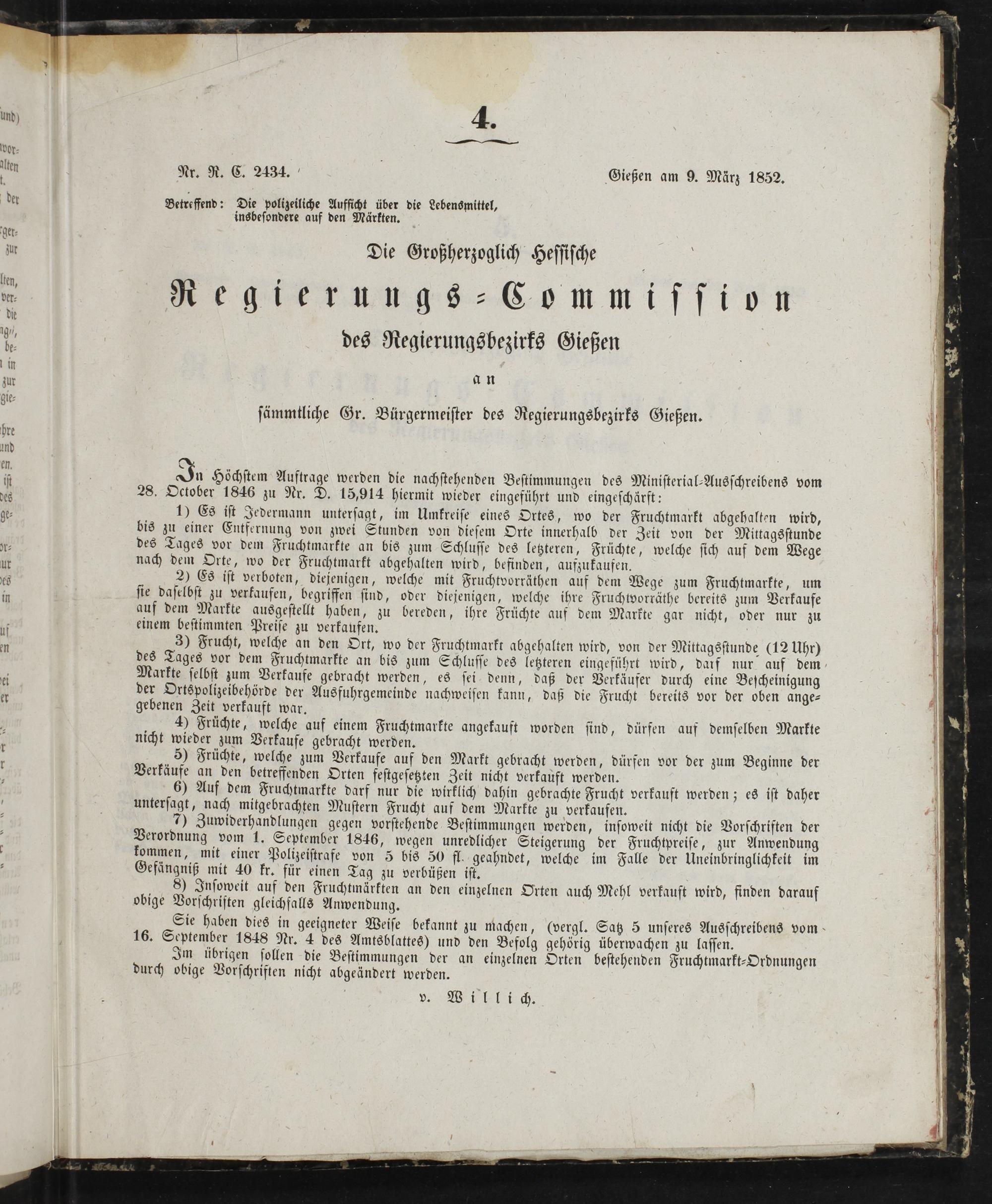 Nr. R. C. 2434. 5 Gießen am 9. März 1852.
