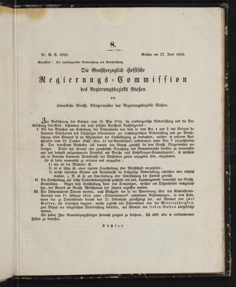 Ni. R. C. 5920. Gießen am 22. Juni 1852.