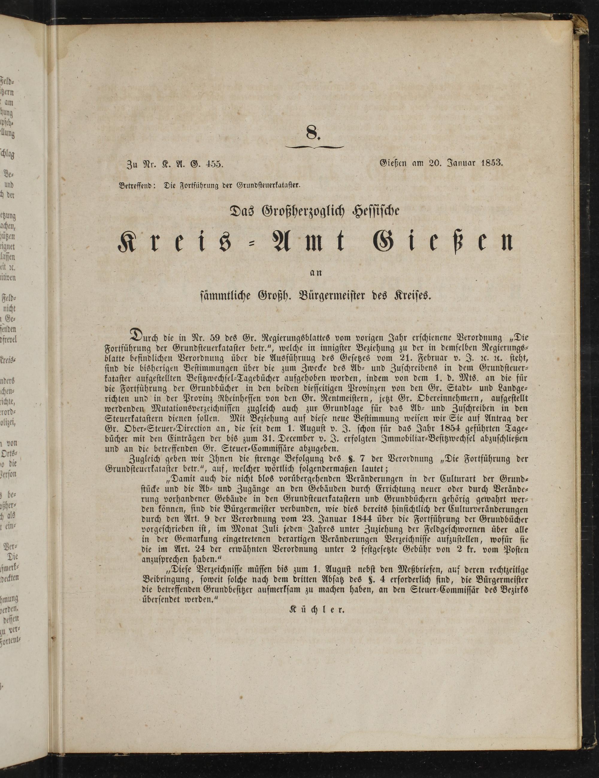 chlag ö Zu Nr. K. A. G. 455. Gießen am 20. Januar 1853.