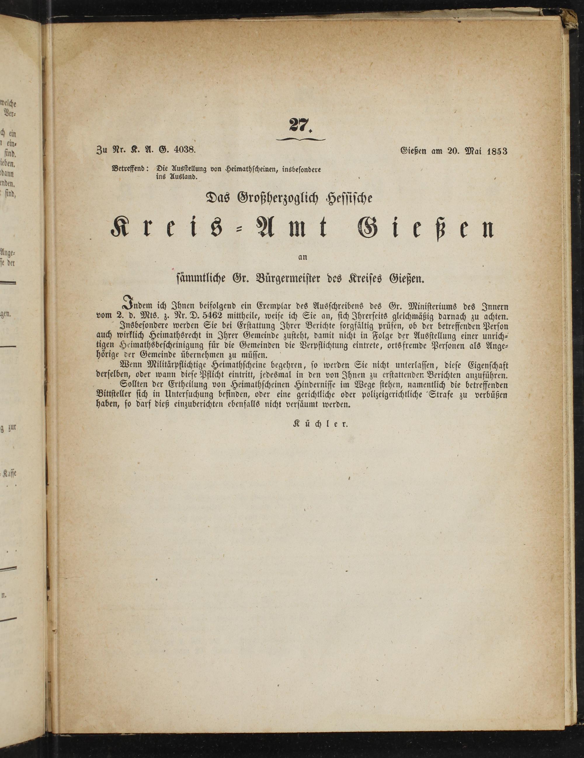 Zu Nr. K. A. G. 4038. Gießen am 20. Mai 18353