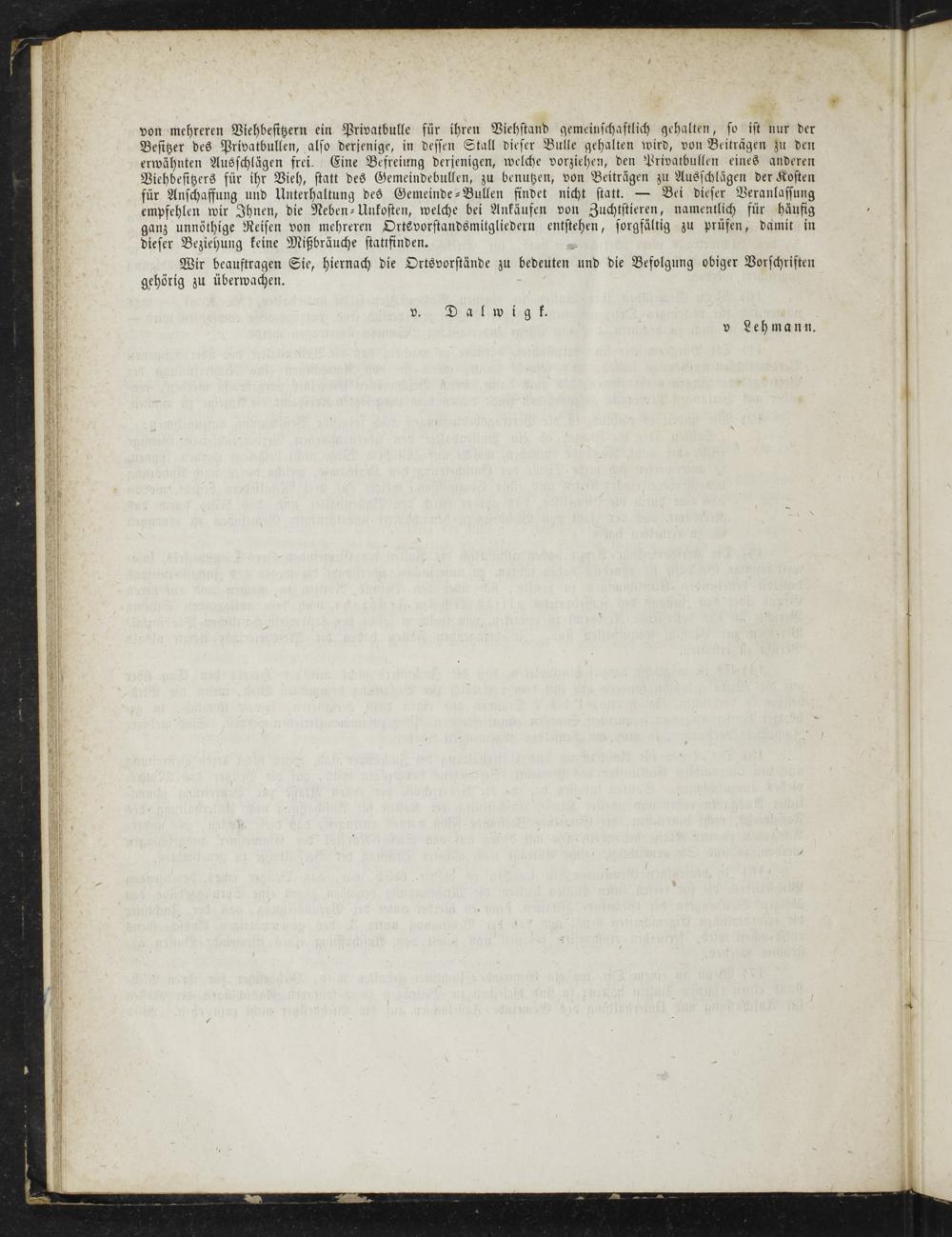 Wir beauftragen Sie, hiernach die Ortsvorstände zu bedeuten und die Befolgung obiger Vorschriften gehörig zu überwachen.