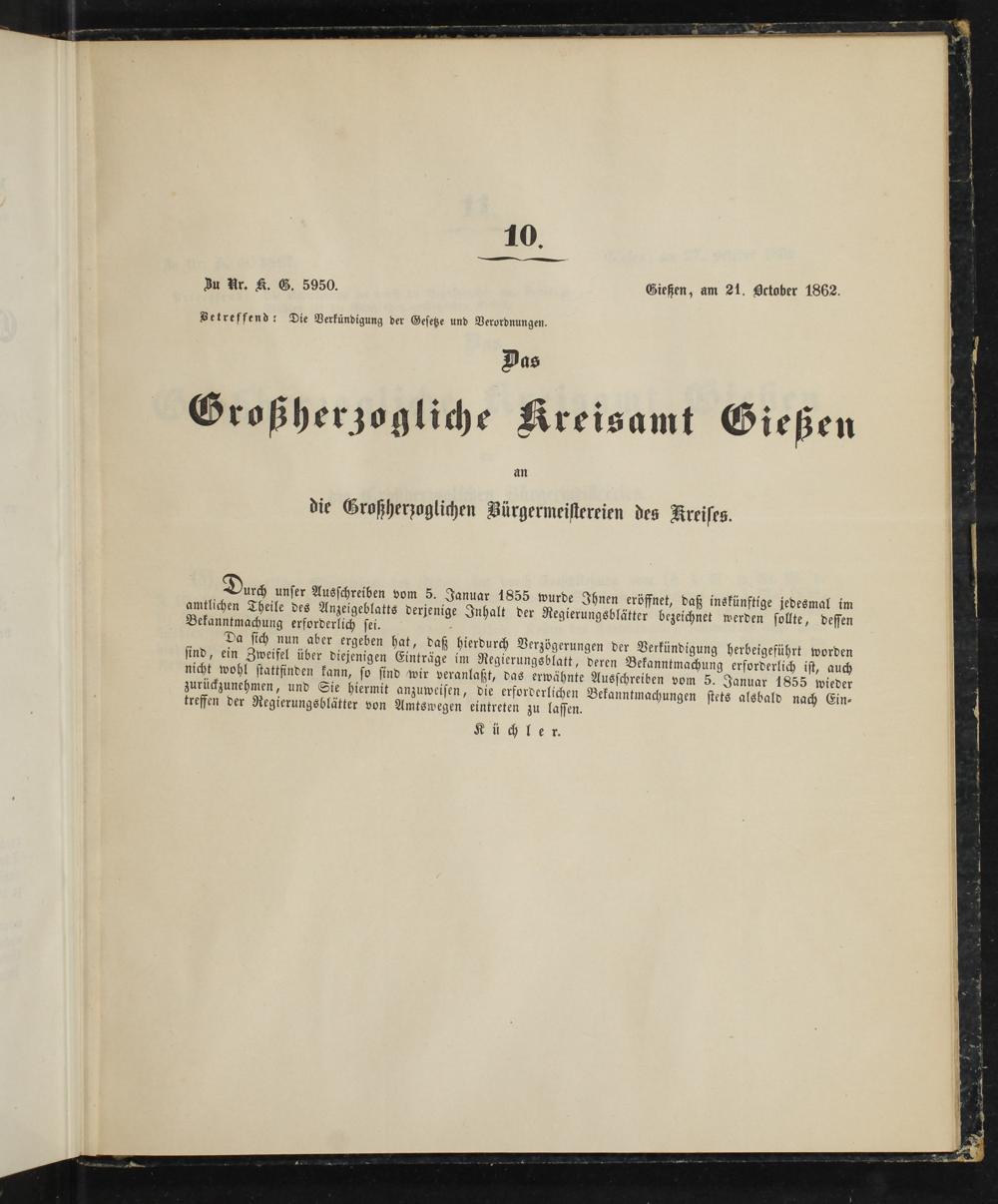 Zu Ur. K. G. 5950. Gießen, am 21. October 1862.