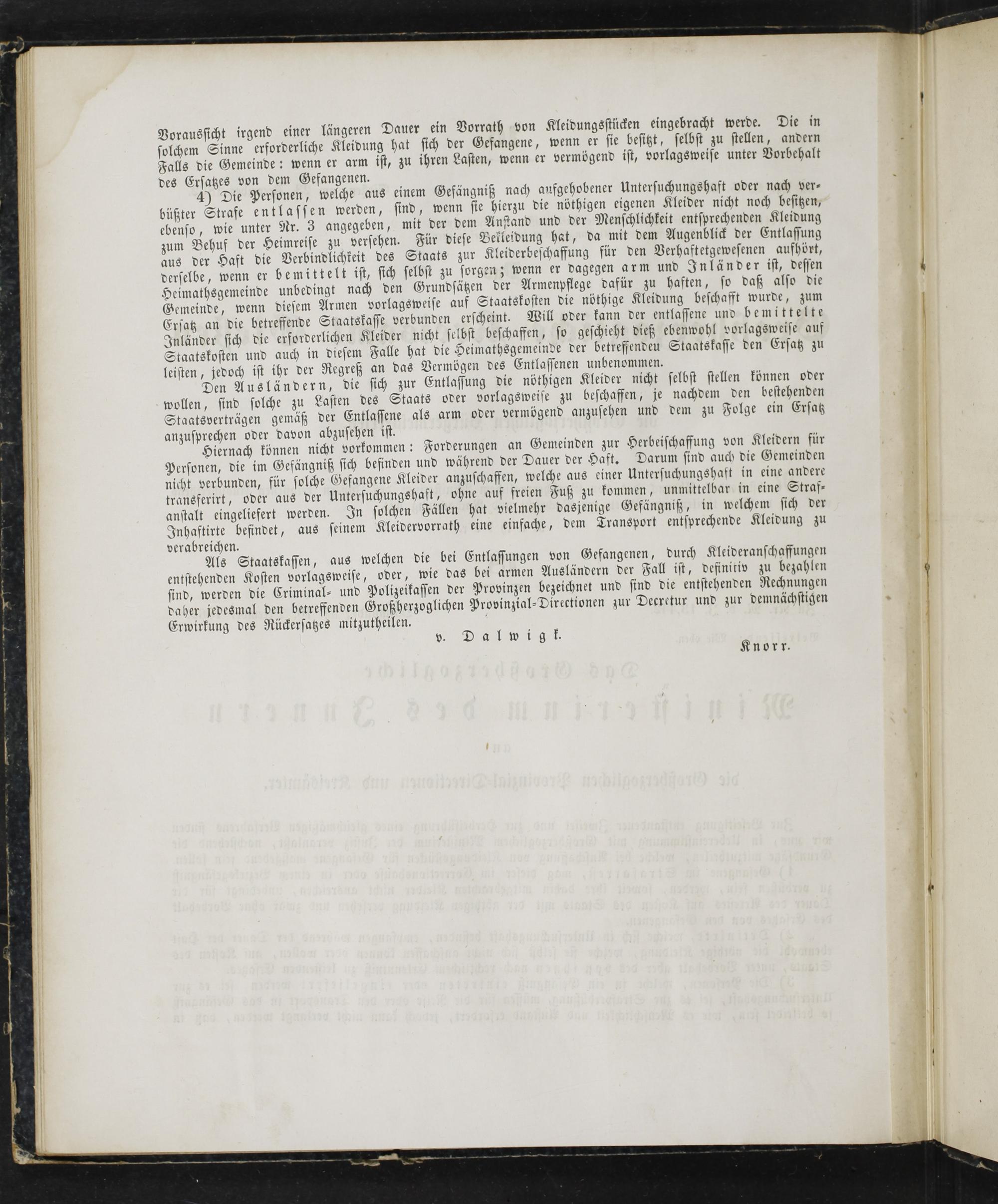 Als Staatskassen, aus welchen die bei Entlassungen von Gefangenen, durch Kleideranschaffungen entstehenden Kosten vorlagsweise, oder, wie das bei armen Ausländern der Fall ist, definitiv zu bezahlen sind, werden die Criminal- und Polizeikassen der Provinzen bezeichnet und sind die entstehenden Rechnungen daher jedesmal den betreffenden Großherzoglichen Provinzial-Directionen zur Decretur und zur demnächstigen Erwirkung des Rückersatzes mitzutheilen.