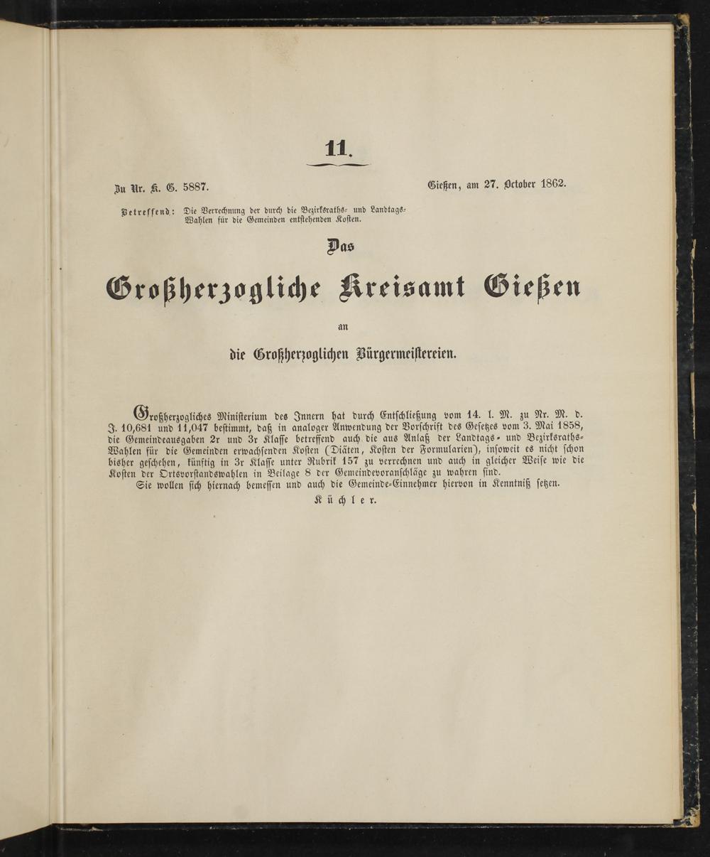 Zu Ur. K. G. 5887. Gießen, am 27. October 1862.