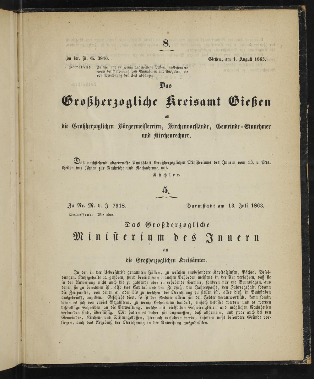 Zu Ur. R. G. 3816. Gießen, am 1. August 1863.
