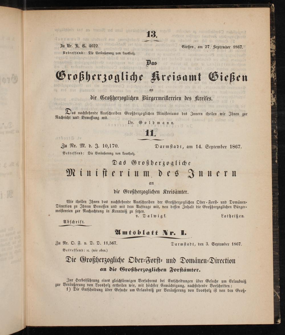 eee Darmstadt, den 3. September 1867. Betreffend: ꝛc.(wie oben.)