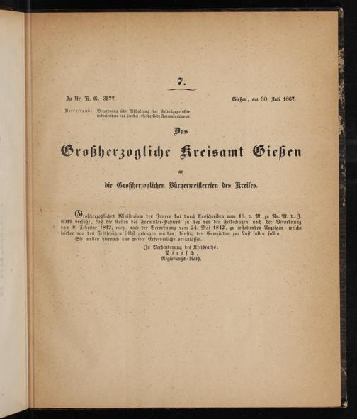 Zu Ur. R. G. 3577. Gießsen, am 30. Juli 1867.