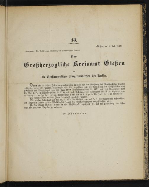 Gießen, am 1. Zuli 1870.