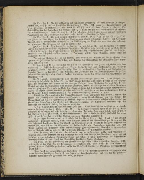 In den Gemeindebudgets sind die unter Ord. Nr. 1 a des Kreiskasse-Voranschlags zu vereinnah— menden Ausschläge in der 3 Klasse— Art. 161— in Ausgabe vorzusehen, sowie in die Beilage 8 auf— zunehmen, da in Bezug auf diese Beiträge der Gemeinden Dasjenige Anwendung findet, was in Art. 6 des Gesetzes vom 3. Mai 1858, die Gemeindeausgaben 2. und 3. Klasse betreffend, hinsichtlich der unter Ziffer 2 und 3 des Art. 4 desselben Gesetzes genannten Ausgaben verordnet ist.