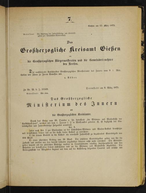 Zu Nr. M. d. J. 13569. Darmstadt am 9. März 1875.