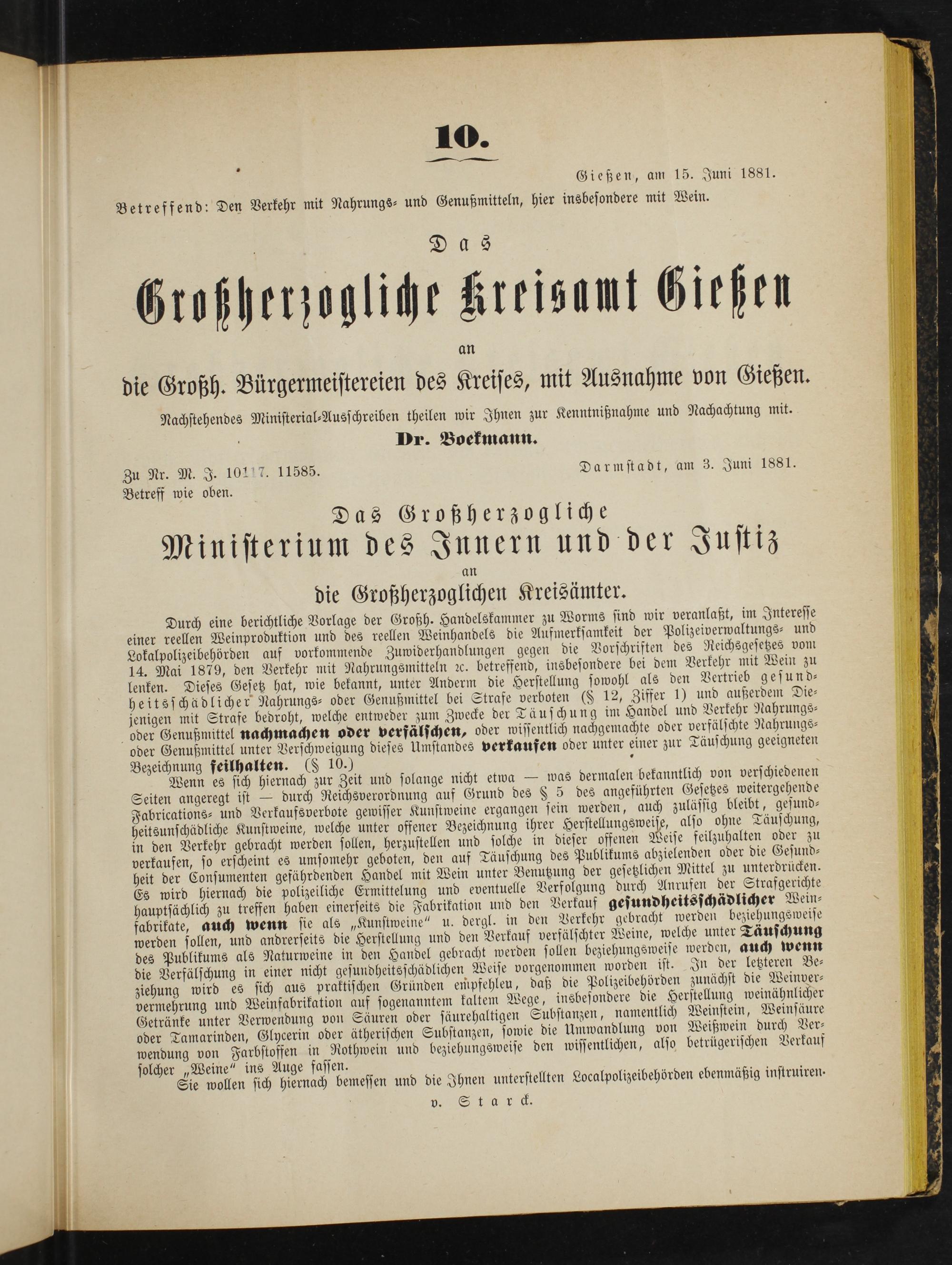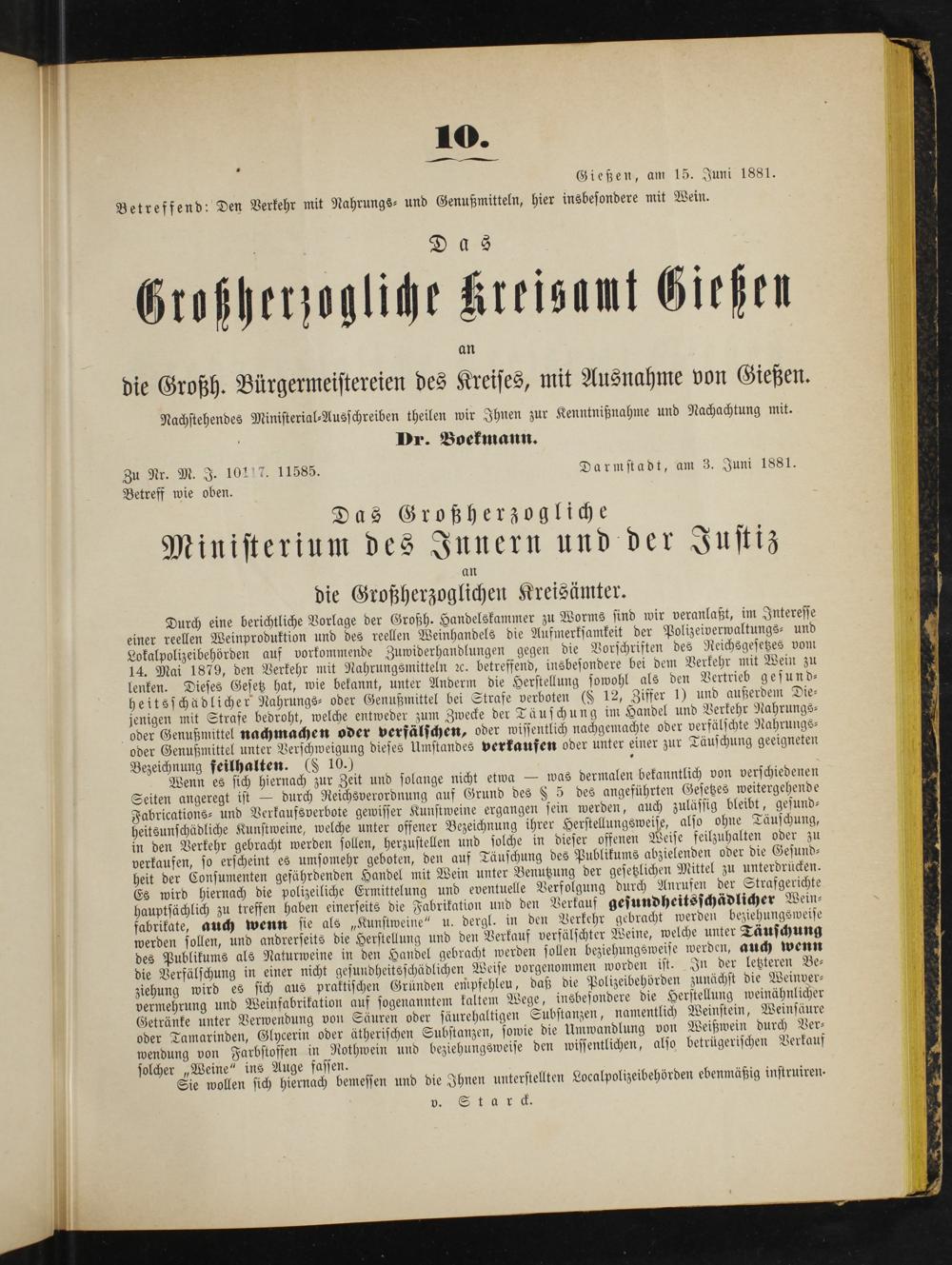 Zu Nr. M. J. 10117. 11585. Darmstadt, am 3. Juni 1881.