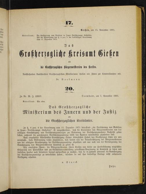 6 20. Zu Nr. M. J. 22037. Darmstadt, am 7. November 1881.