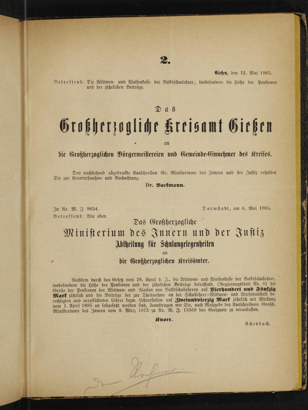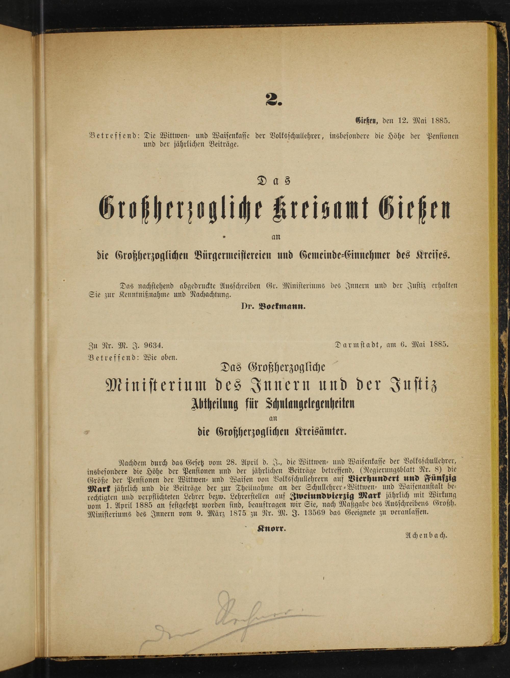 Zu Nr. M. J. 9634. Darmstadt, am 6. Mai 1885.