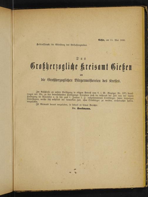 toßhetzoglithe Kteisant Gießen die Großherzoglichen ee des Kreises.