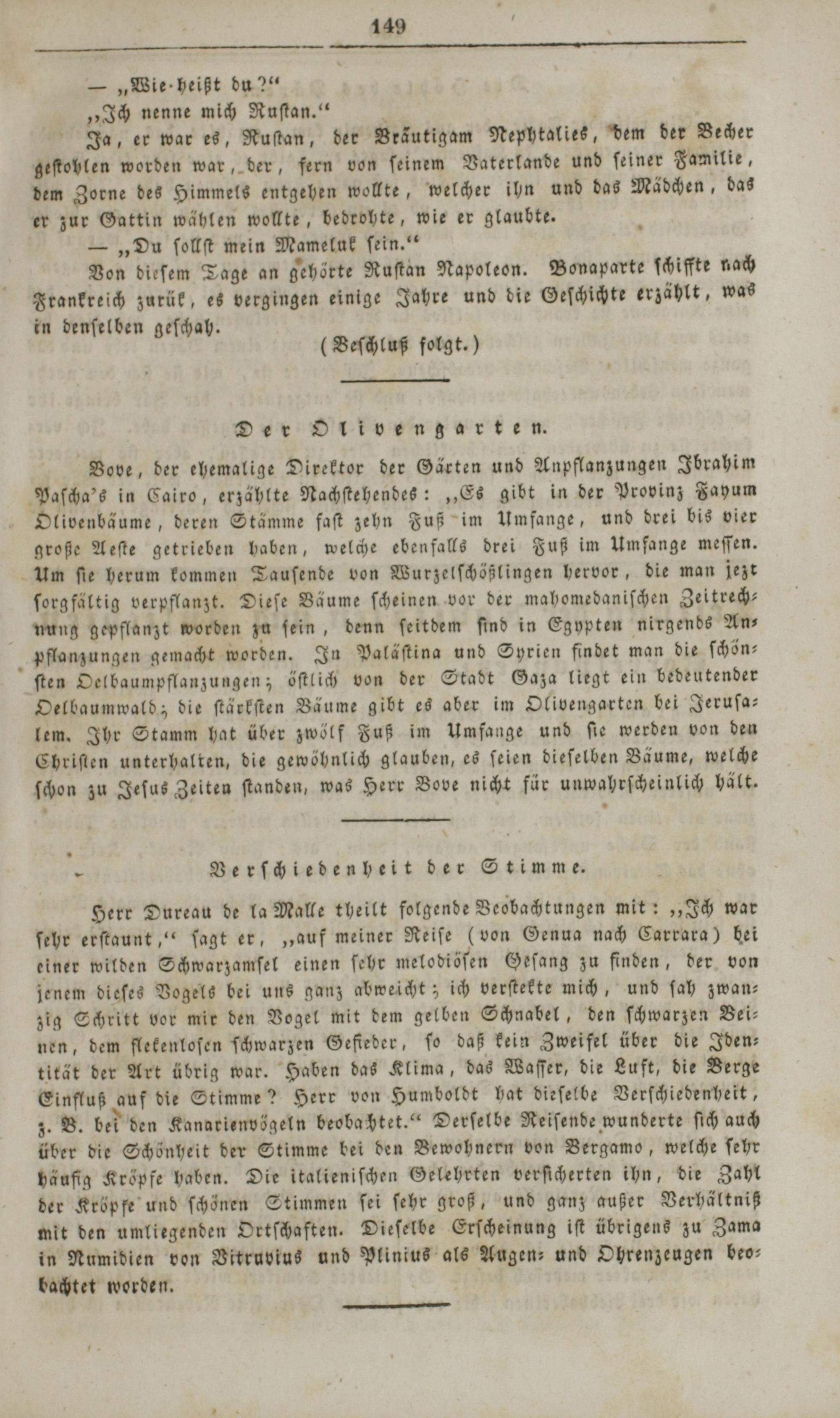 Von dieſem Tage an gehörte Ruſtan Napoleon. Bonaparte ſchiffte nach Frankreich zurük, es vergingen einige Jahre und die Geſchichte erzählt, was