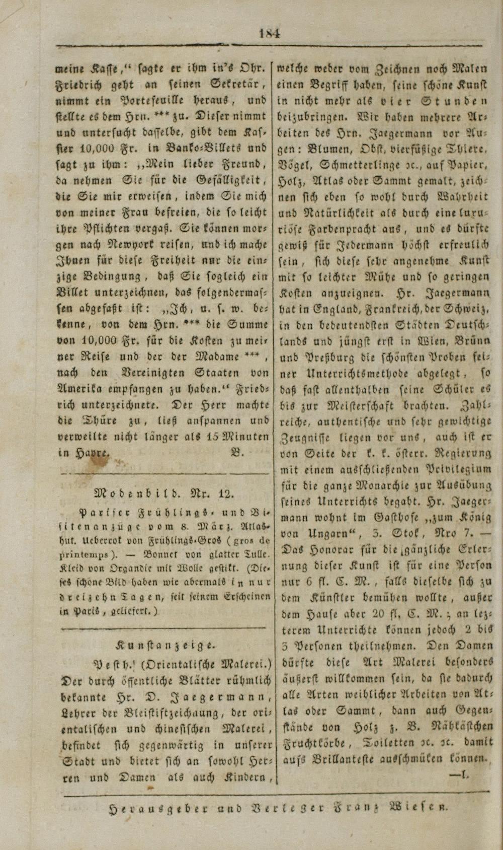 Kunſtanzeige. Me ſſt h.(Oriental iſche Malerei.) Der durch öſſentliche Blätter rühmlich