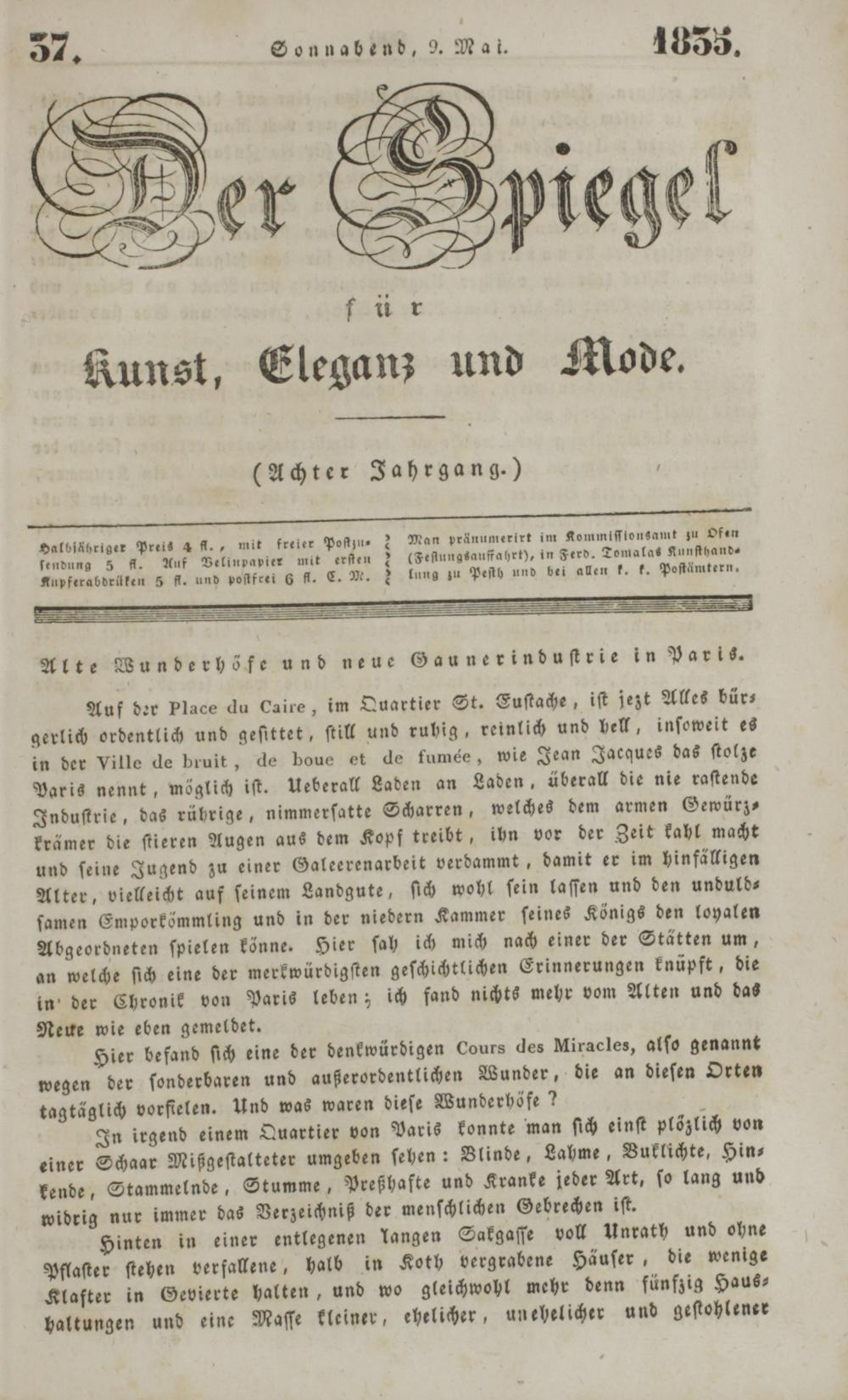 Halblähriger Preis 4 fl., mit freier Poſtzu⸗ 2 Man pränumerirt im Kommiſſtonsamt zu Of en ſendung 5 fl. Auf Velinpapier mit erſten?(Feſtungsauffahrt), in Ferd. Tomalas Kunſthand⸗ Kupferabdrülken 5 fl. und poſtfrei 6 fl. C. M.. lung zu Peſth und bei allen k. k. Poſtämtern,