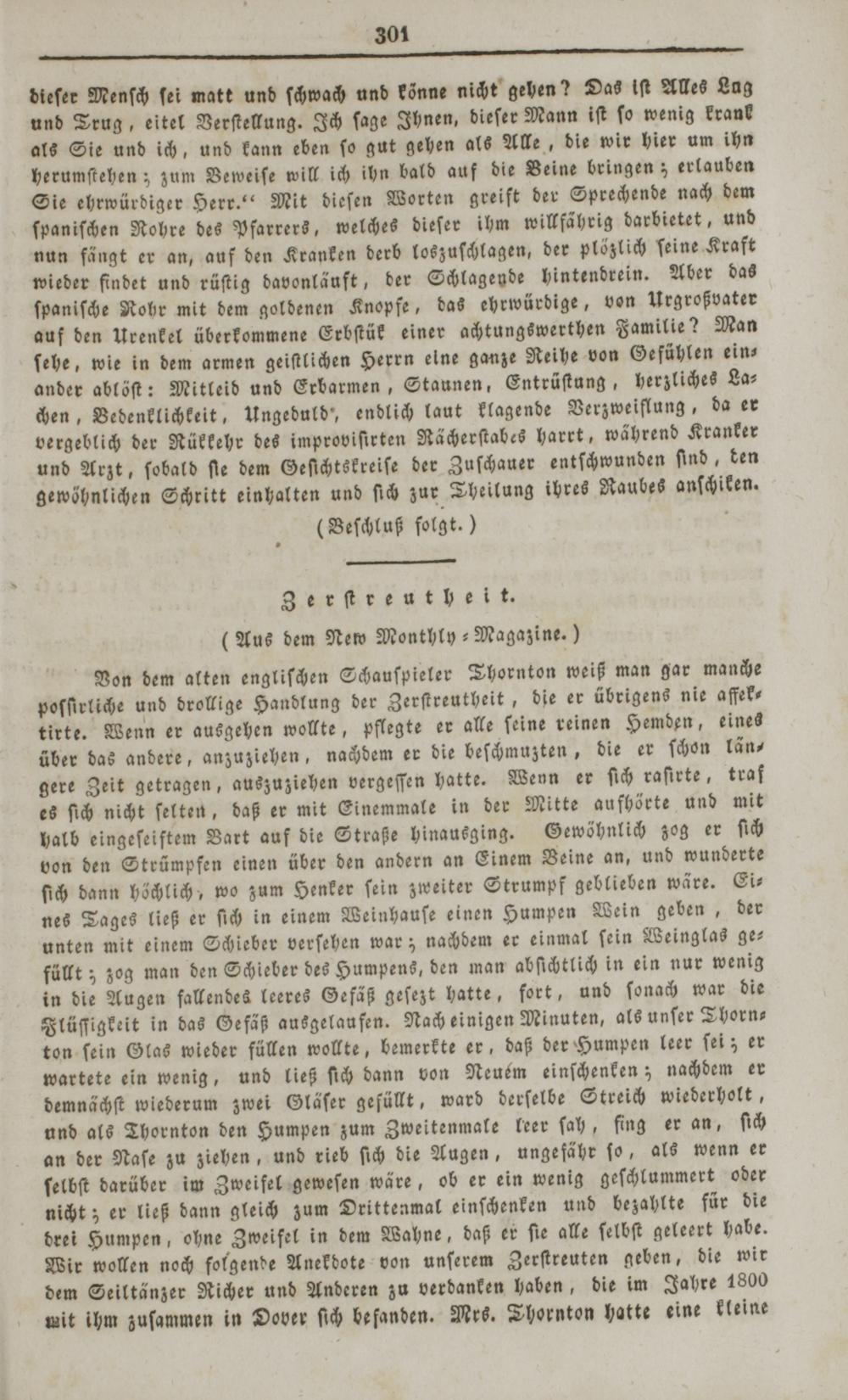 Zerſtreutheit. (Aus dem New Monthly Magazine.)