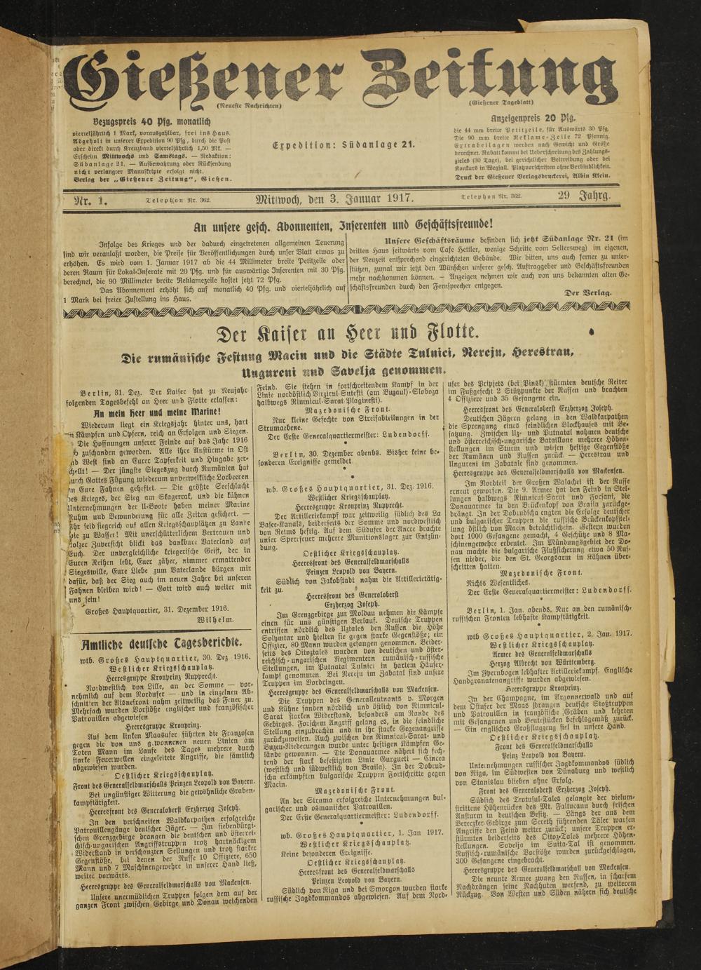 Gießener Zeitung. 1914-1918