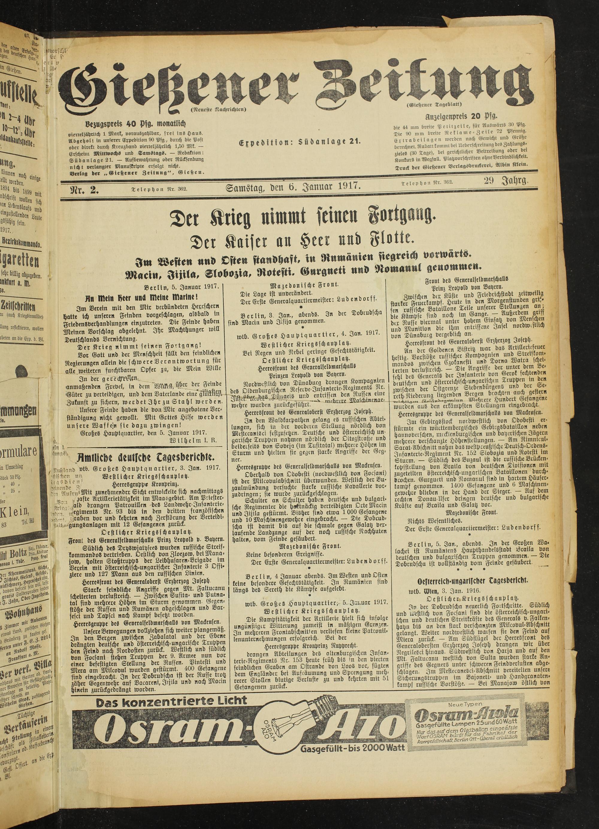 Gießener Zeitung. 1914-1918