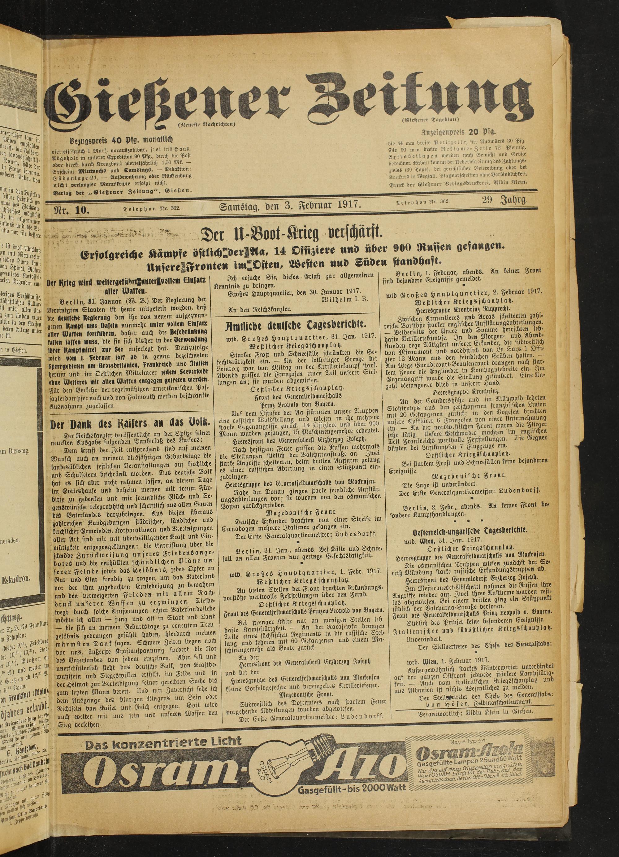 Gießener Zeitung. 1914-1918