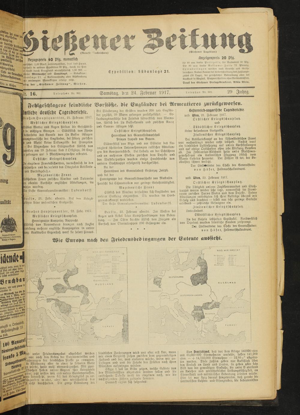 Gießener Zeitung. 1914-1918
