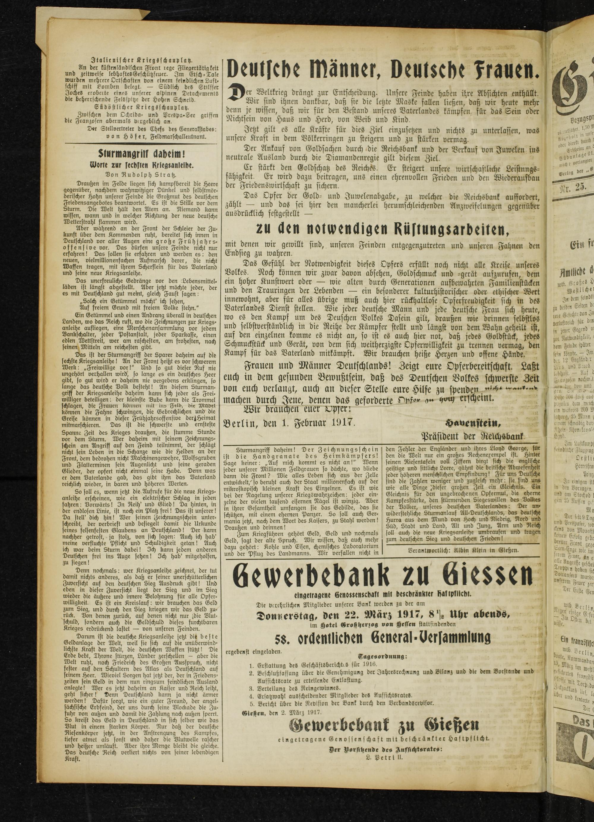 Gießener Zeitung. 1914-1918