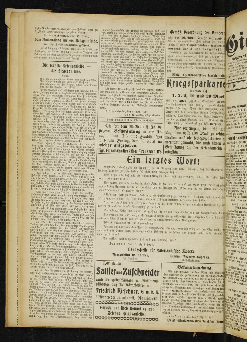 Gießener Zeitung. 1914-1918
