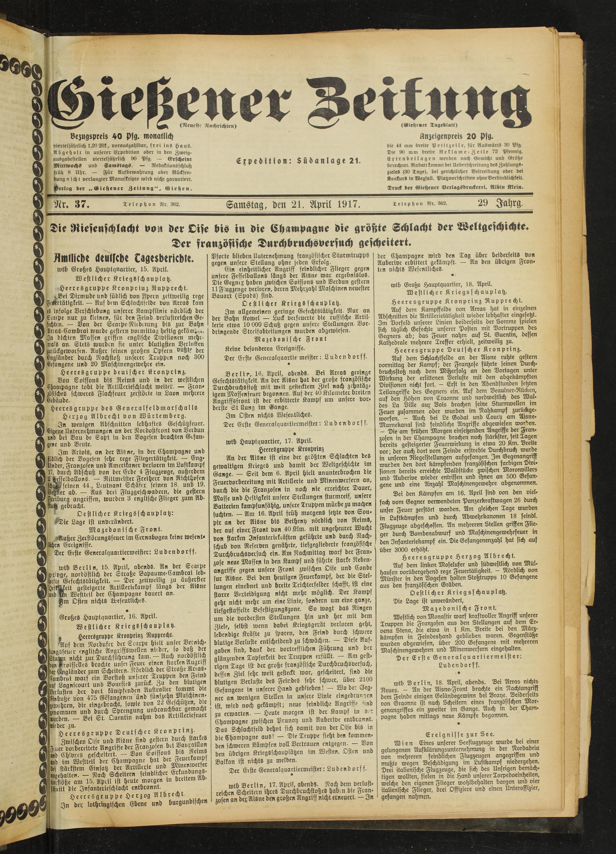 Gießener Zeitung. 1914-1918