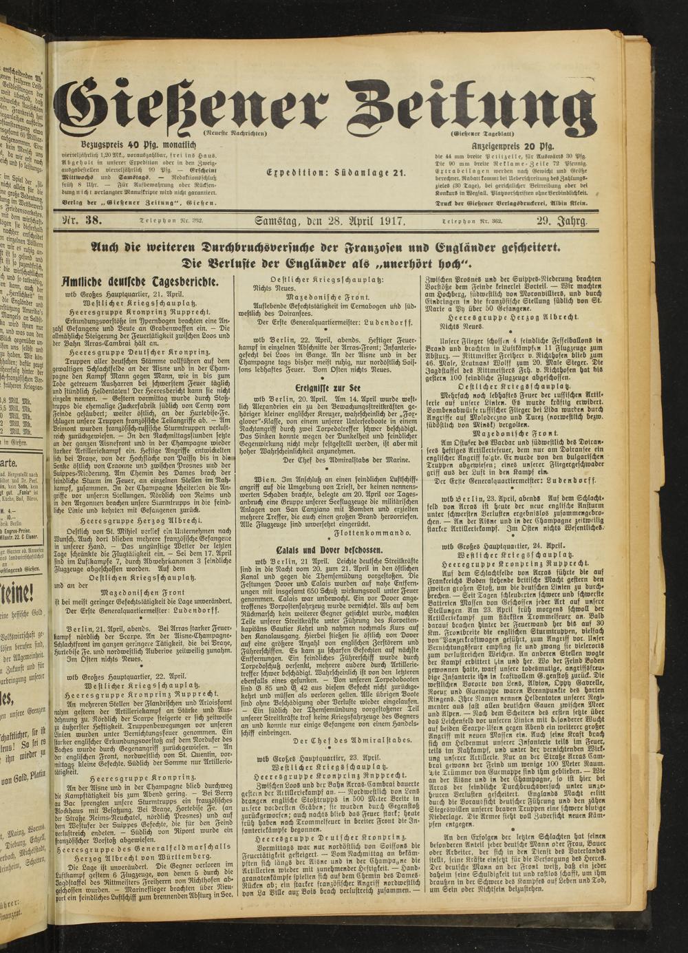 Gießener Zeitung. 1914-1918