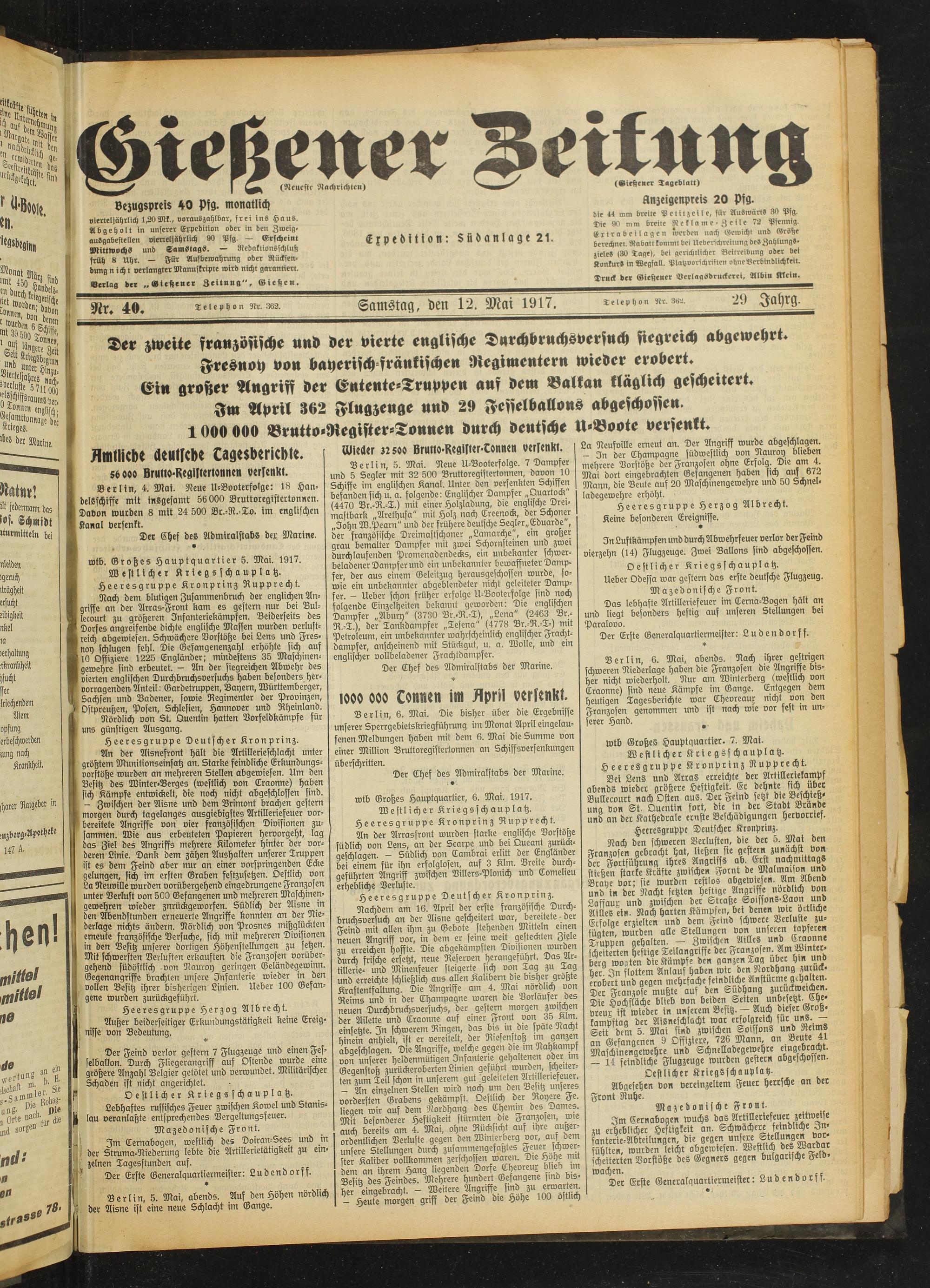 Gießener Zeitung. 1914-1918